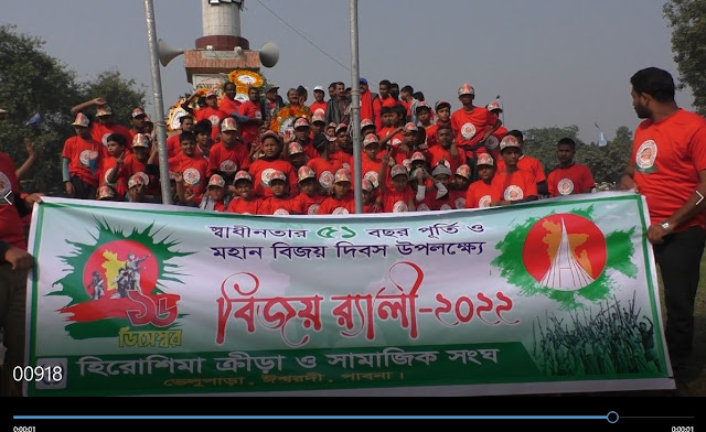 অন্যদিকে সকালে ভেলু পাড়াস্থ ঈশ^রদীর ঐতিহ্যবাহী ক্রীড়া সংগঠন হিরোশিমা ক্লাবের সামনে সুন্দর পরিবেশে জাতীয় ও ক্লাবের পতাকা উত্তোলন এবং গেঞ্জিবিতরণ শেষে বর্ণাঢ্য র্যালি নিয়ে রাজপথ পরিদর্শন করা হয়। পরে ফটোশেষন শেষে বিজয়স্তম্ভে পুষ্পমাল্য অর্পন করা হয়। এসব কর্মসূচিতে ক্লাবের উপদেষ্টা তৌহিদ আক্তার পান্না,আওয়ামীলীগনেতা ইদ্রিস আলী মন্ডল,রঞ্জু হোসেন,এহসানুল কবীর শিমুল,এএ আজাদ হান্নান ও ডাঃ নুরুল ইসলামসহ অন্যরা অংশ নেন।#
